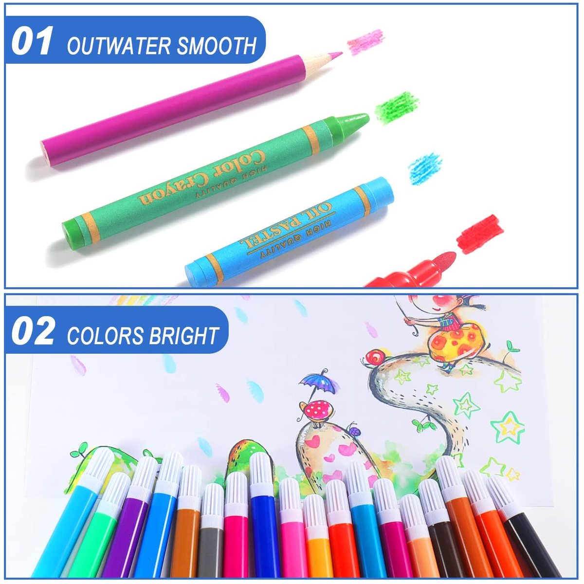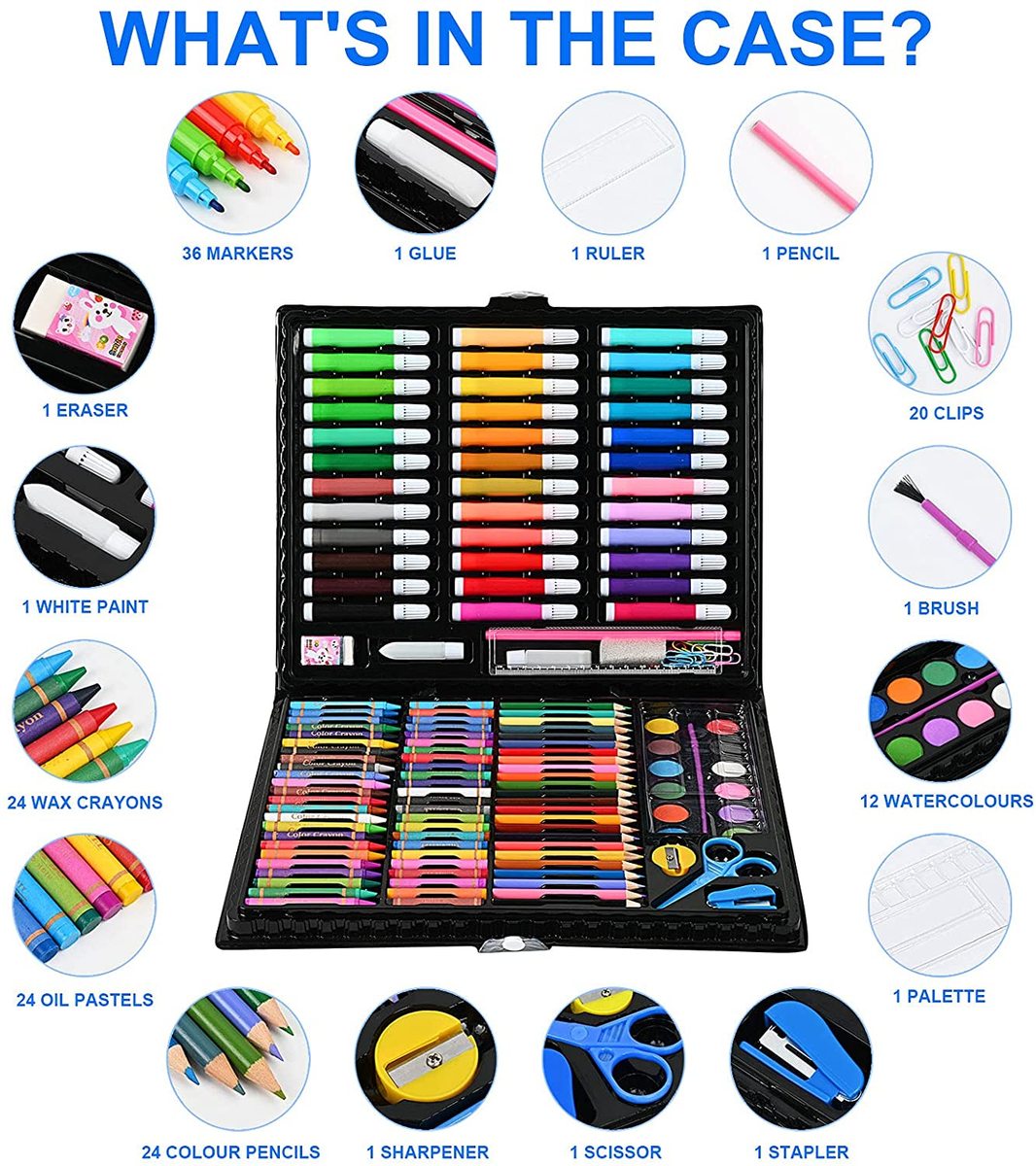 150 Pcs Art Drawing Set with Watercolor Pen and Colour Pencil for Kids